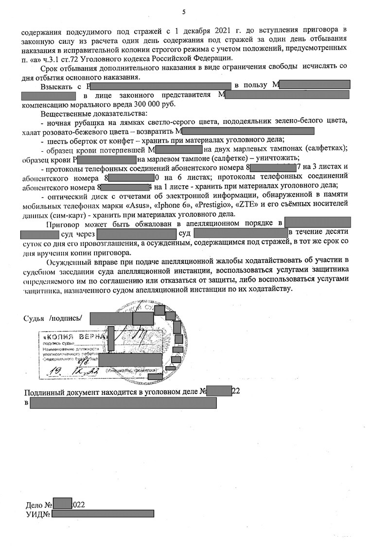 По педофильской статье п. «б» ч. 4 ст. 132 УК РФ посажен сын… Закрыт с 29.11.2021. Уже прошла кассация — без изменения: 12 лет 6 месяцев тюрьмы. Суду хватило СЛОВ «потерпевшей» и её матери, и СЛОВ свидетелей, узнавших о событиях со СЛОВ «потерпевшей» и её матери. Без отца остались 5 детей: падчерица, которую сын воспитывал 11 лет (с 3 лет) и которая зовёт его папой, 3 малолетних дочки и сын, родившийся, когда папка сидел в ИВС. ПЯТЕРО!