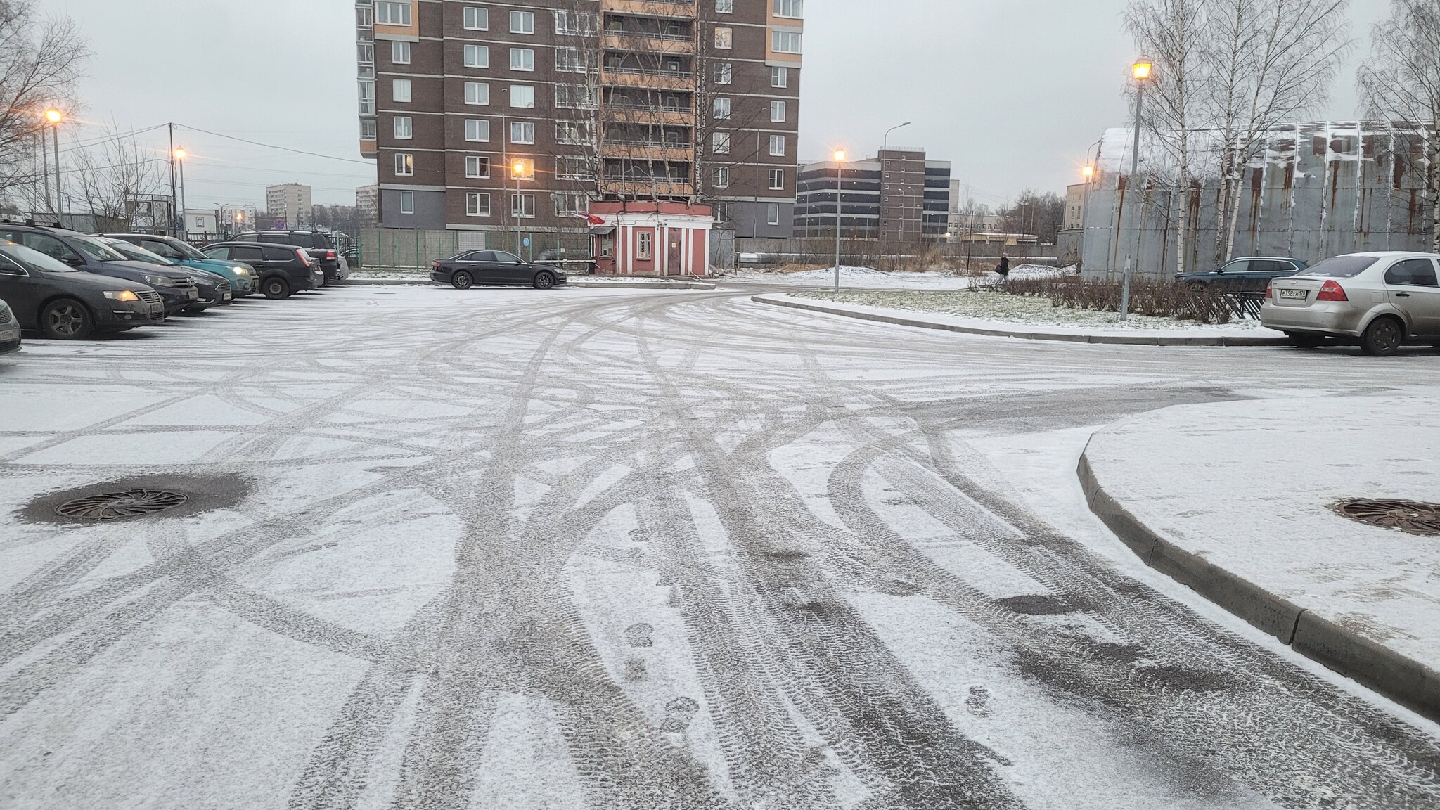 Утром я приехал отвести детей в басссейн и парковка не обработана реагентами.