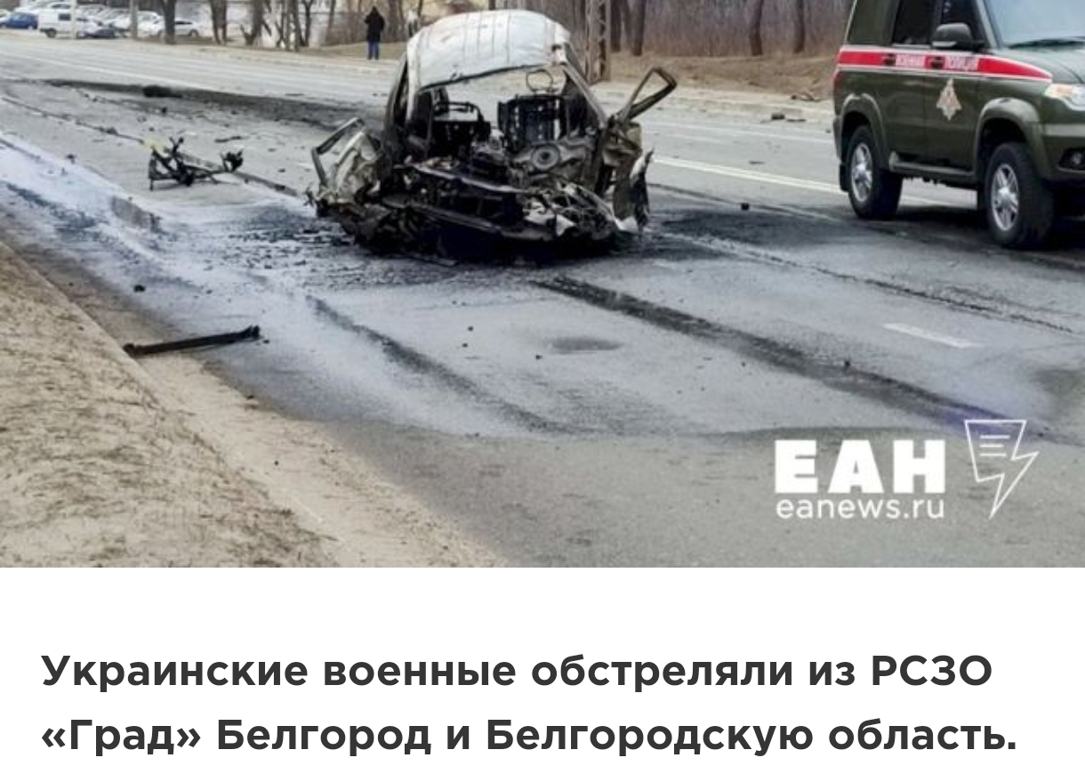 Обстрел Белгорода – это уже раскручивание маховика войны. Война идет уже 1000 дней. За эти дни территория Украины обстреливалась каждый день. Ничего удивительного, что они начали стрелять по городам без особого на то смысла. Я, в отличие от зэтнутых ватанов, отлично понимаю, что на войне не бывает такого, что кто-то только в белом.