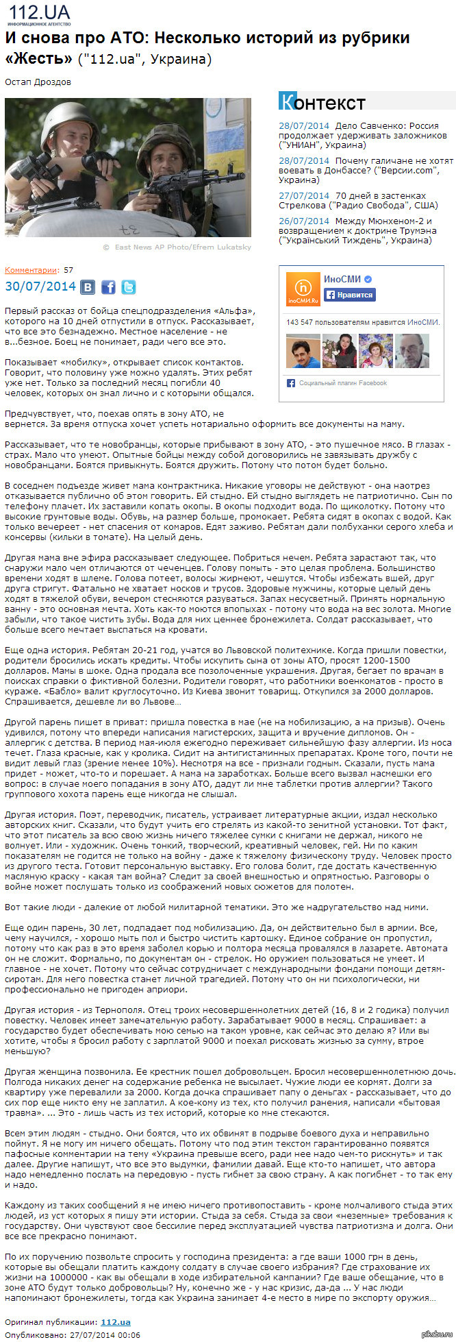 54 yanuk 11 лет назад И снова про АТО: Несколько историй из рубрики «Жесть» Украина Война на Донбассе