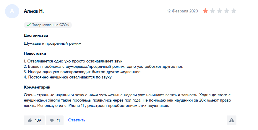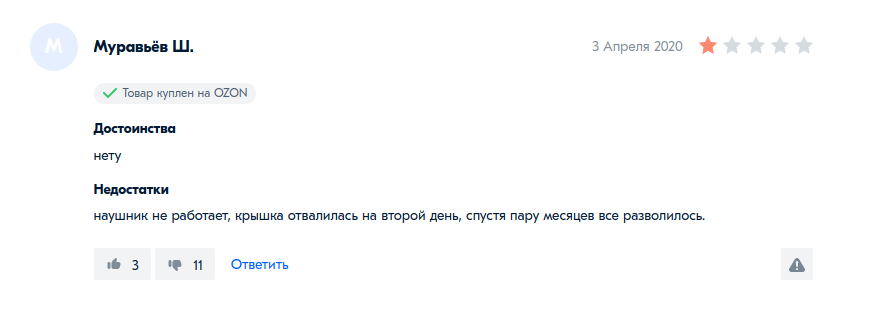 Давайте просто посмотрим страницу товара (благо, негативные отзывы Озон не удаляет, и на том спасибо).