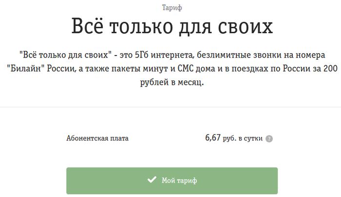 И так тариф оказался "Все только для своих"