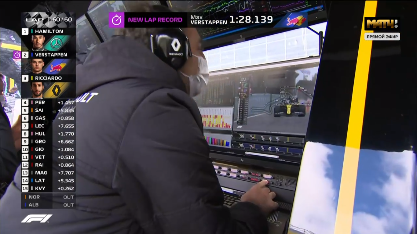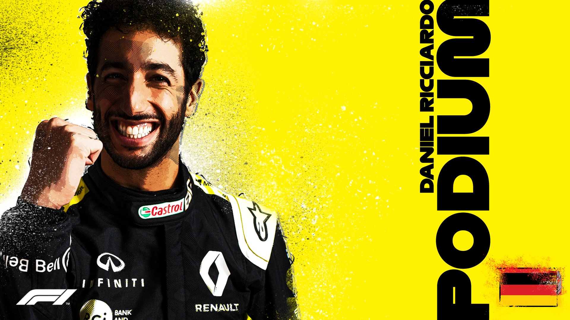 - Первый подиум Рено в турбогибридную эру и 101-й в истории участия в Формуле 1. Также первый подиум Риккьярдо после двухлетней засухи.