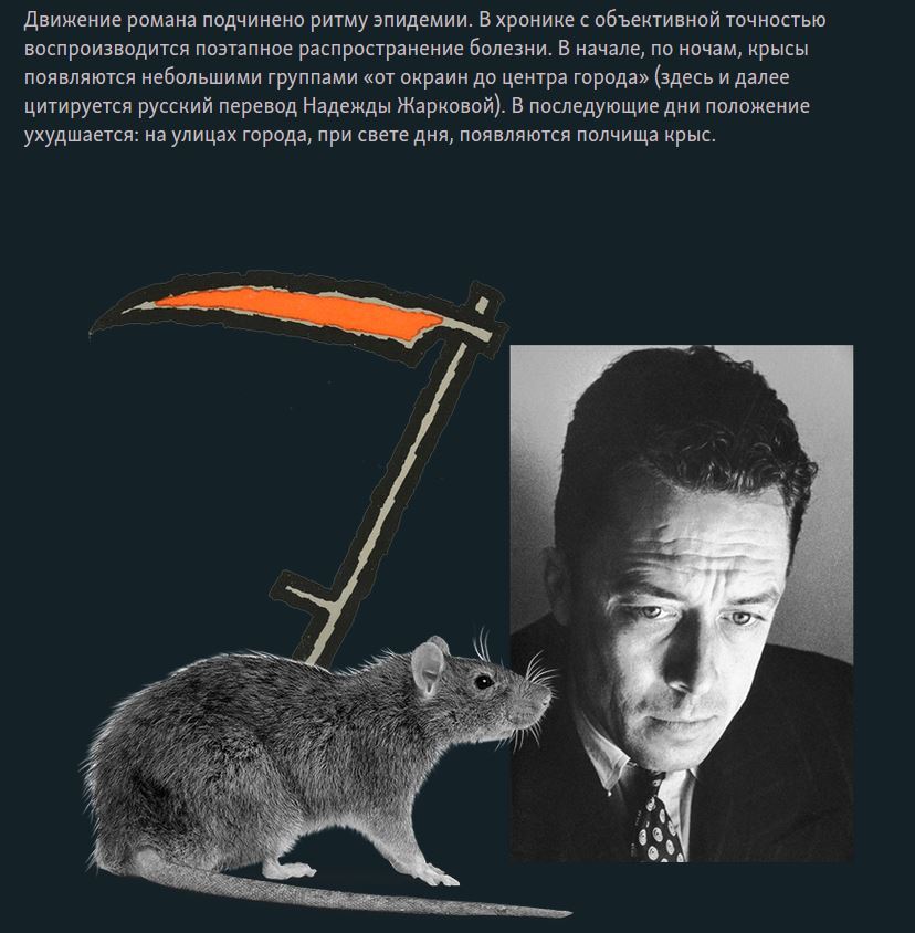 В перерыве между чтением страшных новостей и рассматриванием баянов с котиками я, как типичный пикабушник, решил полистать какие-нибудь умные статьи на недавно перечитанную "Чуму" от Альбера нашего Камю. Гуглояндекс привел меня на известный книжный портал, в названии которого есть слово "Горький" и слово "медиа". Налил себе кофейку, сел читать и вдруг - первая иллюстрация.