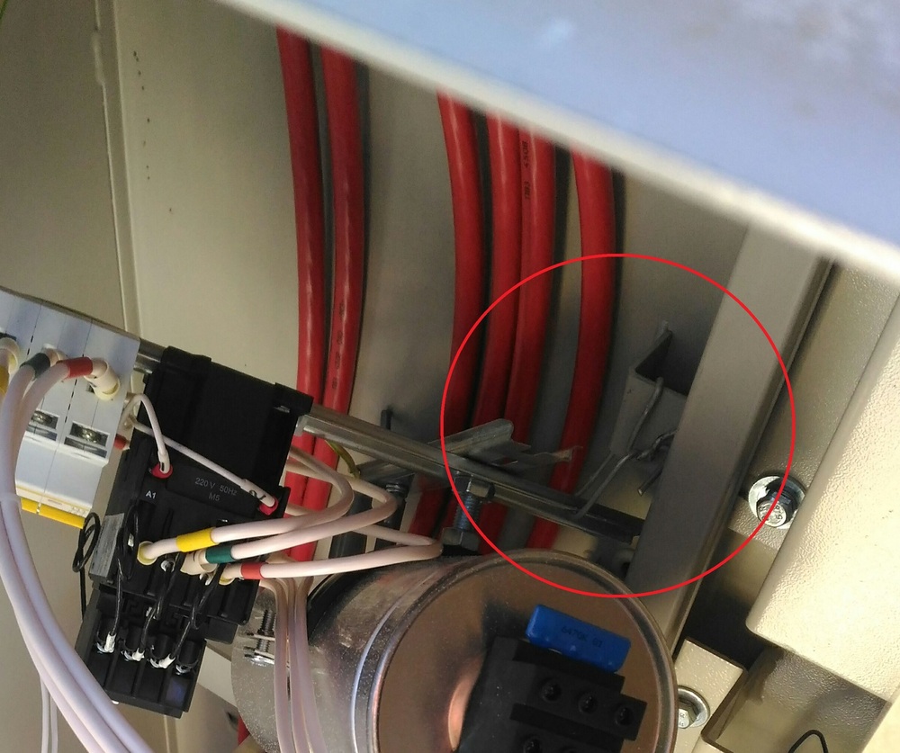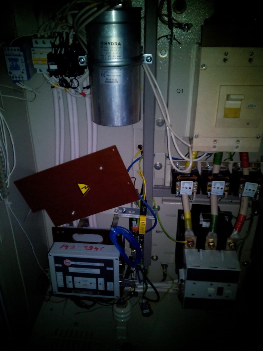 Это станция управления УЭЦН производства ЗАО Электон. В связи с глобальным потеплением занимаемся установкой КРМ (компенсатор реактивной мощности). Так вот, приехал на скважину, открыл дверь СУ. А тут даже лучше чем синяя изолента, прикручено аллюминиевой проволокой!