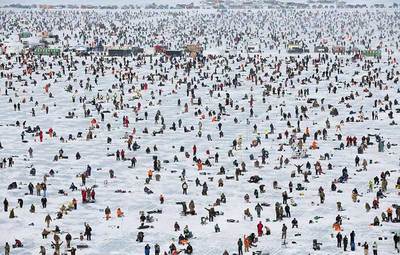А на заднем плане пара человек только отойдя от машины,поезда,автобуса-уже начали разливать.Бывает и на лёд не выходят)