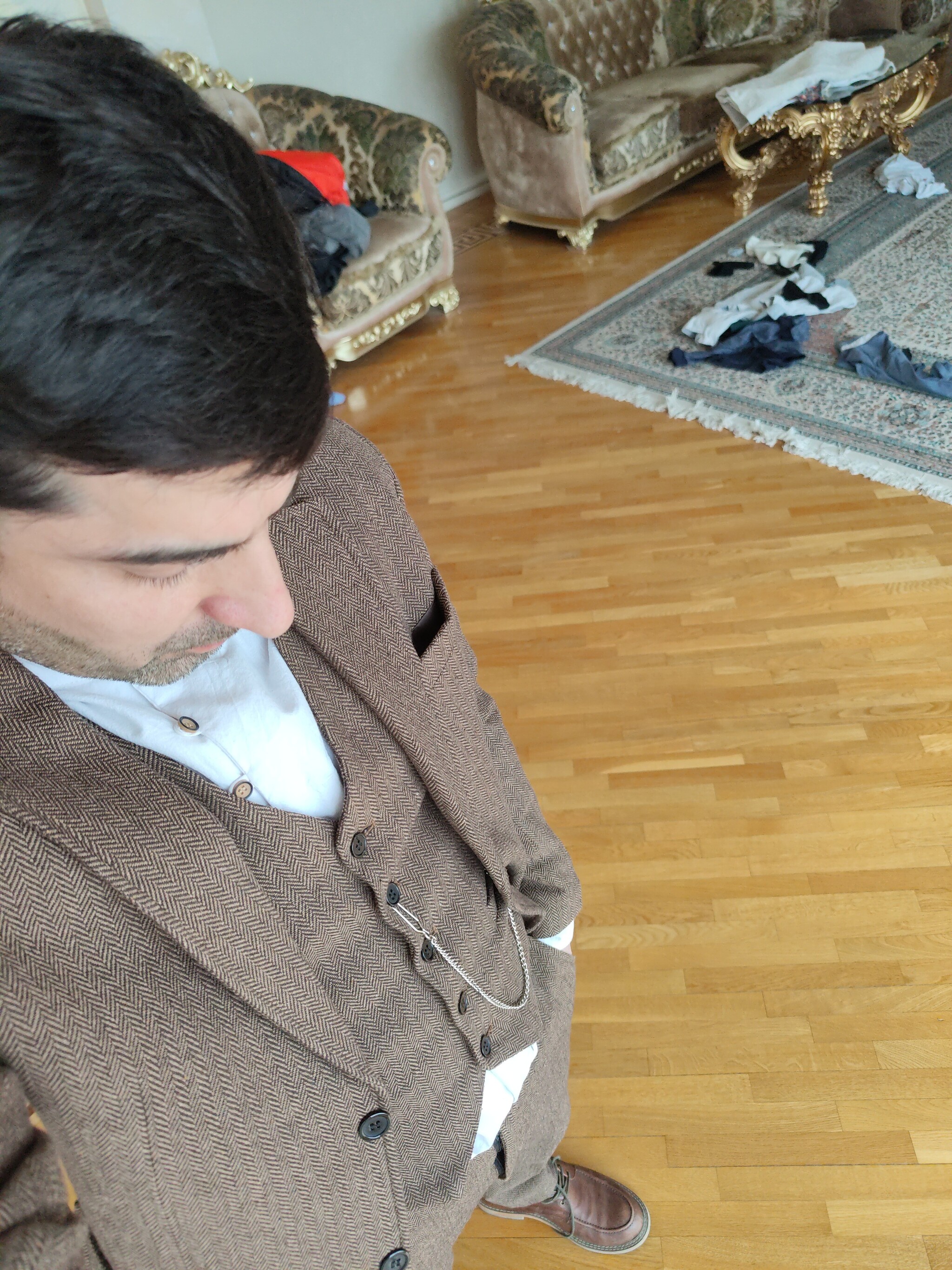 Карочий, выглядит как в доме армянстайла, ты вбежал, кое-как приоделся самсебяшкнулся и быстренько всё снял)))