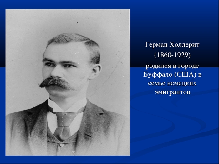На это господина Холлерита, потомка германских эмигрантов, открыто гордившегося своими корнями, побудил успех его первых счетно-аналитических машин собственного производства.
