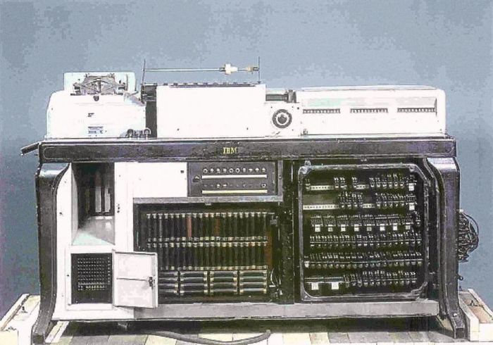 Суть изобретения дедушки "голубого гиганта" заключалась в том, что он разработал электрический переключатель, позволяющий кодировать данные цифрами. Носителями информации в этом случае служили карты, в которых в особом порядке пробивались отверстия, после чего, перфокарты можно было сортировать механически. Эта разработка, запатентованна Германом Холлеритом в 1889 году.