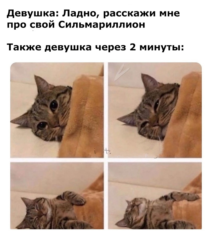 100 Lekontant Средиземье - мир Толкина Идеальная девушка, наверное) 2 года назад Юмор Властелин колец Сильмариллион Девушки Кот Картинка с текстом 2 1 1 Ещё 0
