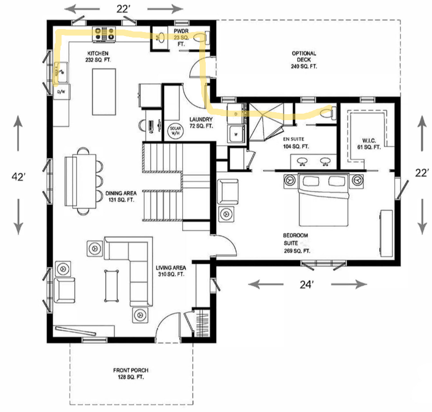 Собрать этот дом, молодая семья сможет легко, ППР по проекту легко проработать пошагово. В первую очередь правый блок дома. Месяц работы и есть место для жизни, продолжаем стройку не выезжая, поэтапно.