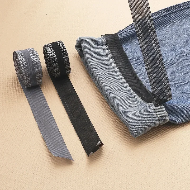 Простой способ подогнать брюки по длине без похода в ателье. Лента активируется влагой и температурой, поэтому достаточно отмерить нужный кусок, смочить его, приложить к подогнутому краю и аккуратно пройтись утюгом. Через пару минут низ уже зафиксирован, а шов выглядит аккуратно и ровно.