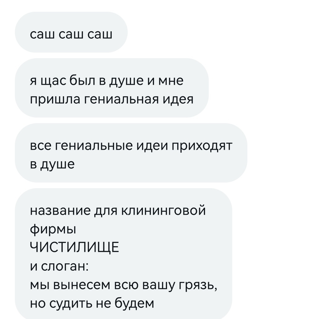784 VerhovniyMemolog Юмор для всех и каждого Идея 1 год назад Телеграм - Три мема внутривенно Юмор Скриншот Переписка Клининг Telegram (ссылка) 15 3 Ещё 0