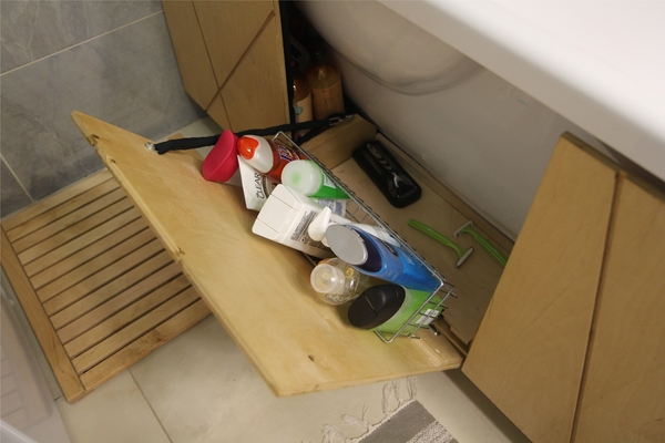 В последней "секции" снова много места - из-за уклона ванны. Тут помещается даже ведро для мытья полов. И ещё кой-чего по мелочи.