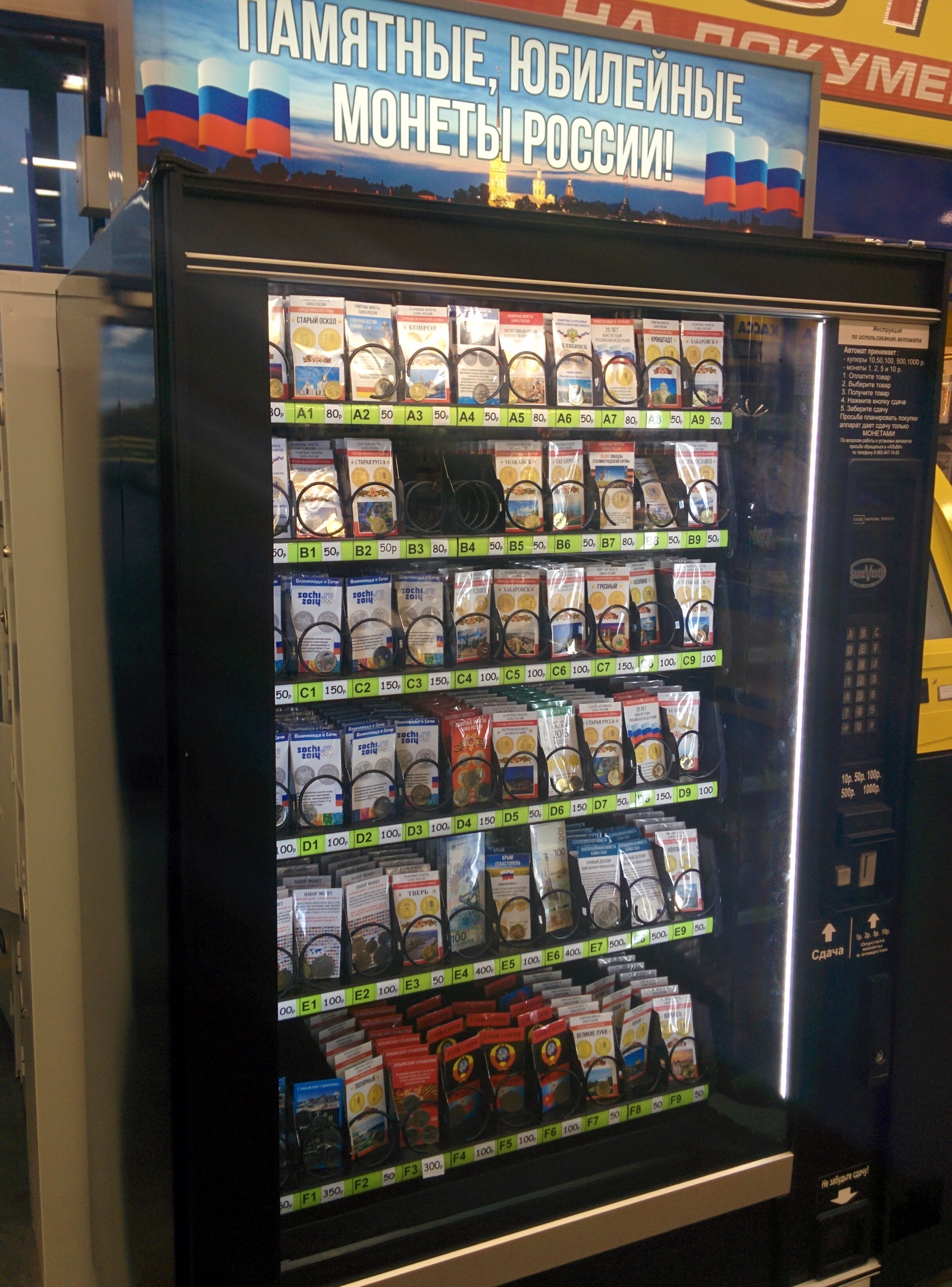 32 eplutus Идея для стартапа. 9 лет назад Обнаружил такую прелесть в одном гипермаркете в Питере. В голове крутится только одна мысль - а так правда можно было?Торговый автомат не мой, моё только фото. [моё] Юбилейные монеты Памятные монеты Стартап Идея