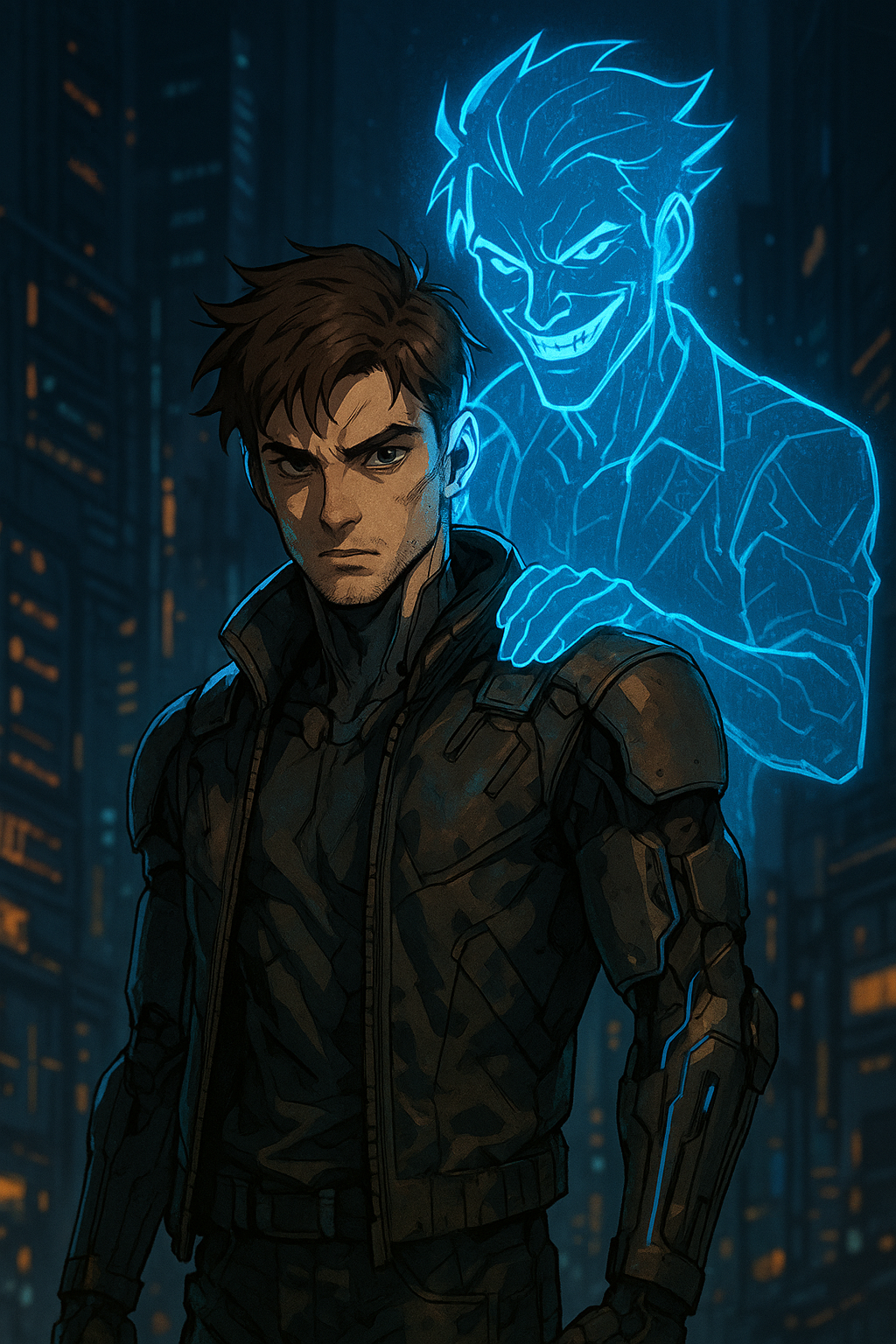 Во время погони за бандитами он случайно находит странный чип неизвестного происхождения. При активации пробуждается «Призрак» — цифровое эхо прошлого воина. Сначала он ведёт себя как сумасшедший: смеётся, орёт, подкалывает героя. Но в критических ситуациях становится холодным и расчётливым стратегом.