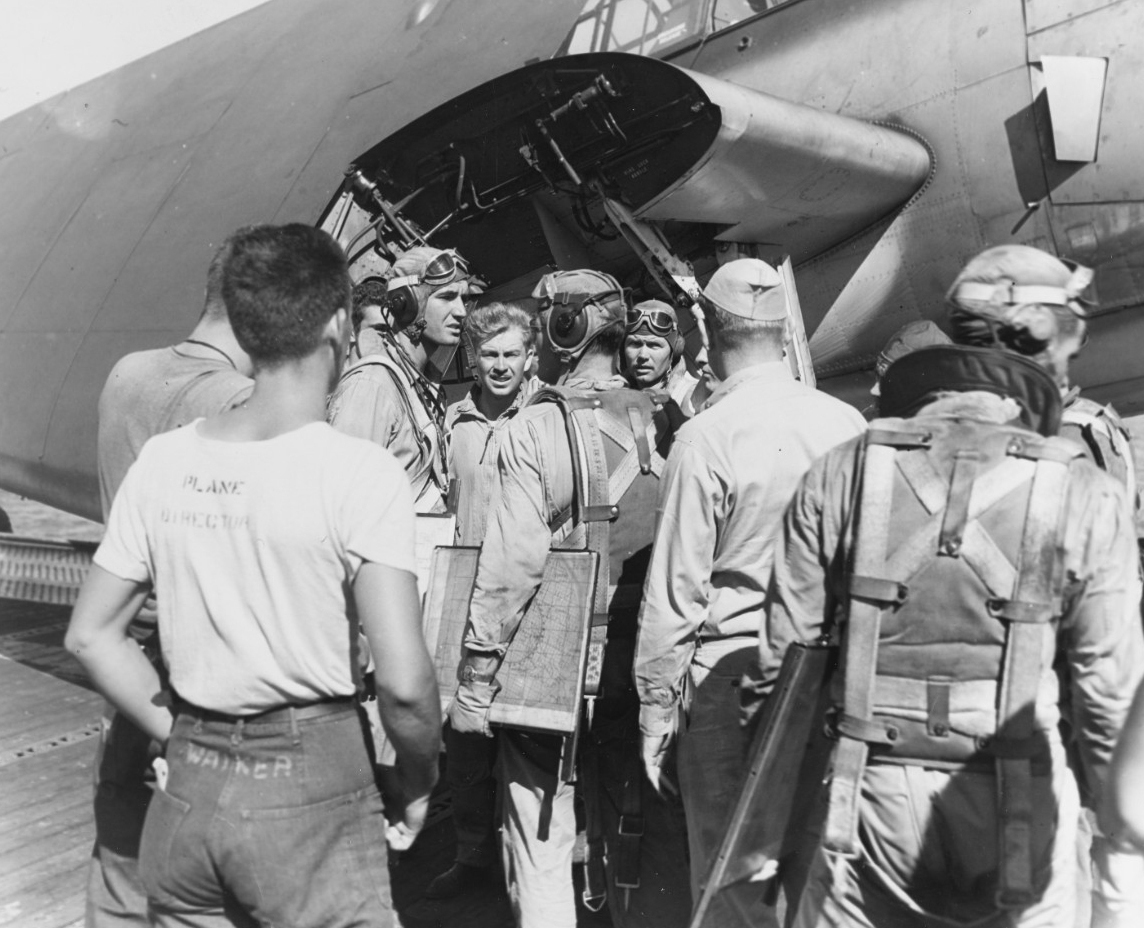 Всего: 523 истребителя, 243 пикирующих бомбардировщика, 216 торпедоносцев.Пилоты торпедоносной эскадрильи лёгкого авианосца «San Jacinto» после боевого вылета. Филиппины, октябрь 1944 года