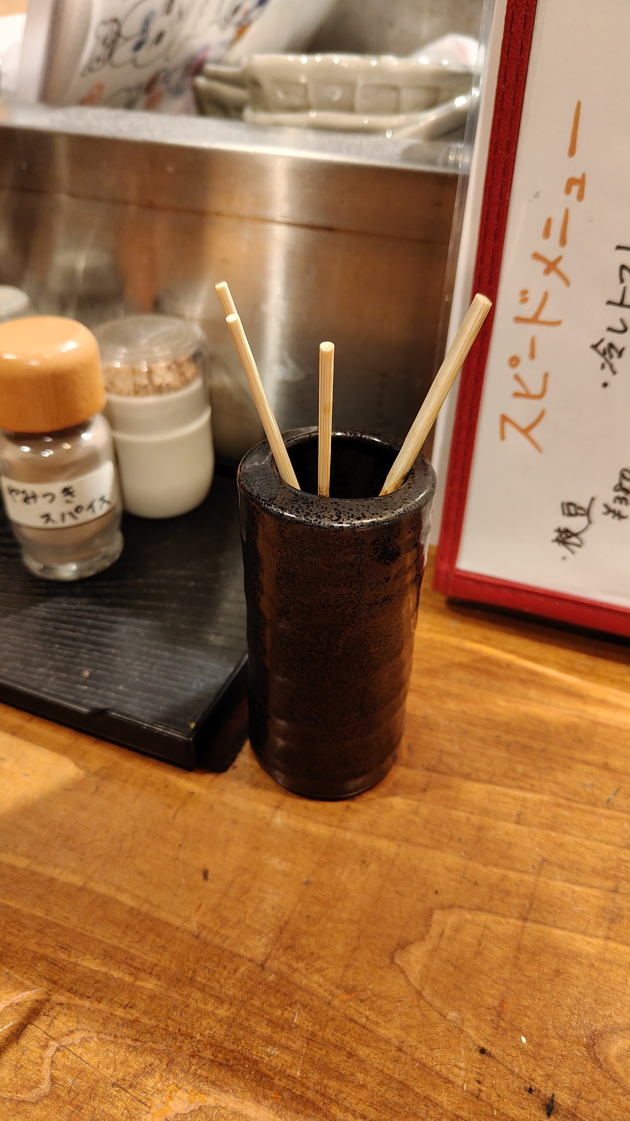 Есть стаканчик под шашлычные палочки. Под конец решил заказать в слепую без перевода и не прогадал...)