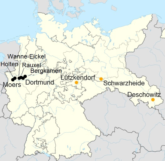 Расположение заводов было, разумеется, основным предметом споров между учредителями компании – было абсолютно понятно, что заводы надо размещать по соседству с угольными шахтами, которые будут обеспечивать производство ресурсами, и, соответственно, будут иметь гарантированный сбыт своей продукции. Шахты учредителей располагались в разных районах страны, так что вопрос размещения производств был принципиальным. Собственно, именно по причине заинтересованности поставщиков сырья было принято решение о строительстве нескольких относительно небольших (с производительностью до 200 тысяч тонн бензина в год) заводов вместо одного большого предприятия, аналогичного, например «Лойна-Верке».