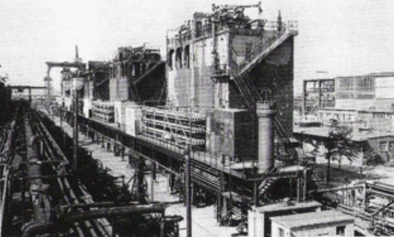 Если в случае с созданием BRABAG немецкому государству приходилось преодолевать некоторое сопротивление немецких промышленников, то дальше дело пошло по накатанной. Как я уже упоминал, повышение цен на топливо сделало рентабельным бизнес по производству искусственного топлива, и промышленники начали вкладываться в него. Как правило инициаторами постройки завода выступали компании владельцы ресурсной базы – залежей угля. В частности, свои заводы по производству топлива имелись в корпорации Круппа и «Рейхсверке Герман Геринг». Специалисты ИГ «Фарбен» возводили и вводили в эксплуатацию установки по гидрогенизации угля, после чего концерн зарабатывал на отчислениях с производимого на заводе топлива. Однако и сам концерн вложился в создание еще двух заводов по синтезу ГСМ, отдельно стоит отметить завод, построенный в городе Пелитц, который, впоследствии стал самым большим предприятием по производству синтетического бензина в Третьем рейхе: в конечном итоге завод производил 15% от всего объема производства синтетического топлива в Германии. История создания этого завода, помимо прочего, любопытна тем, что в его строительство вложился не к ночи будь помянутый «Стандарт Ойл». Причины участия американцев в проекте были очевидны, во-первых, как я уже отмечал, производство синтетического топлива в Германии стало коммерчески выгодным, а во-вторых, в качестве сырья для получения бензина завод, отчасти, должен был использовать отходы нефтеперегонного завода «Стандарт Ойла» в Гамбурге. Вообще надо отметить, что производство синтетического топлива очень сильно подстраивалось под конкретные производственные условия – характеристики местного сырья, воды и т.п. поэтому вклад технических специалистов ИГ «Фарбен» был очень важным в каждом предприятии.
