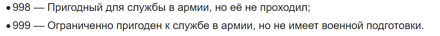 Привет! Все окей, 998 и 999 это отсутствие ВУС.