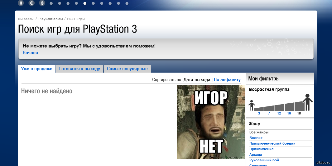 19 ShareMan Игор нет! 12 лет назад Зашел я в PS Store и вот,что увидел,выбрав один из разделов [моё] Playstation Игры