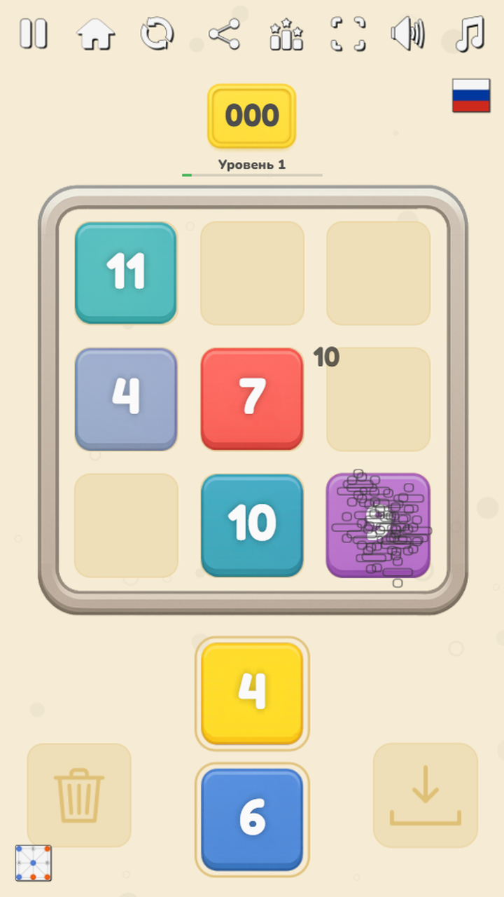 Лишние числа можно кидать в хранилище справа или в корзину слева.