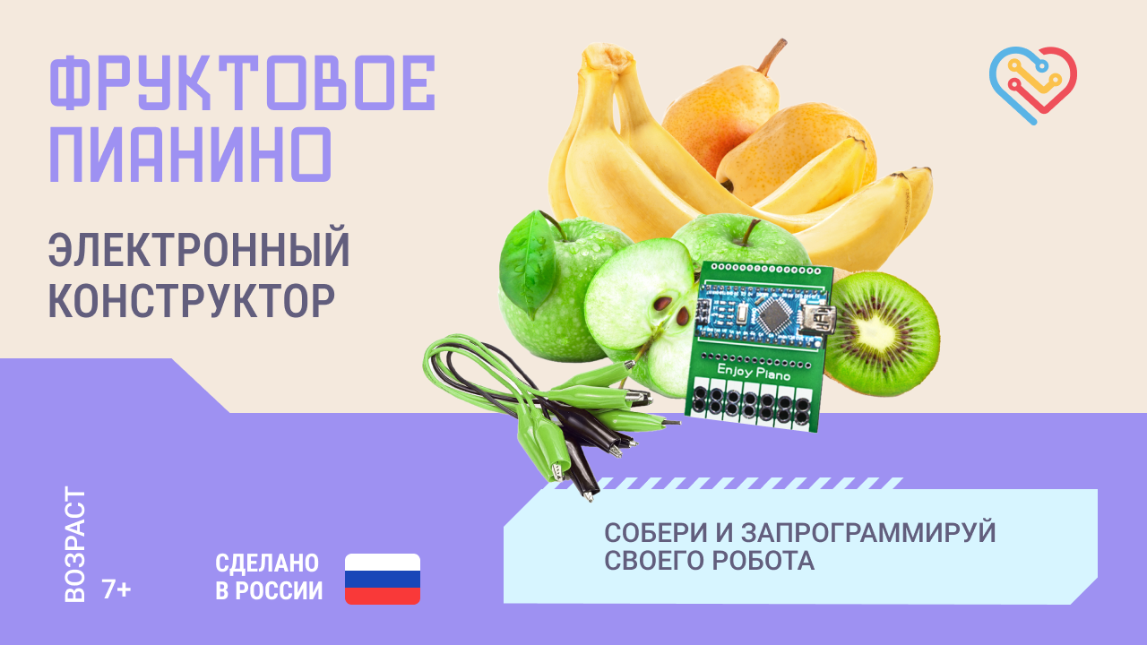 Дерзайте и вы вместе с нашим обучающим набором по робототехнике и электронике под названием «Фруктовое пианино». При покупке вы получаете полный доступ к инструкциям и онлайн-урокам по программированию и сборке, а также оперативную техническую поддержку в случае возникновения трудностей.