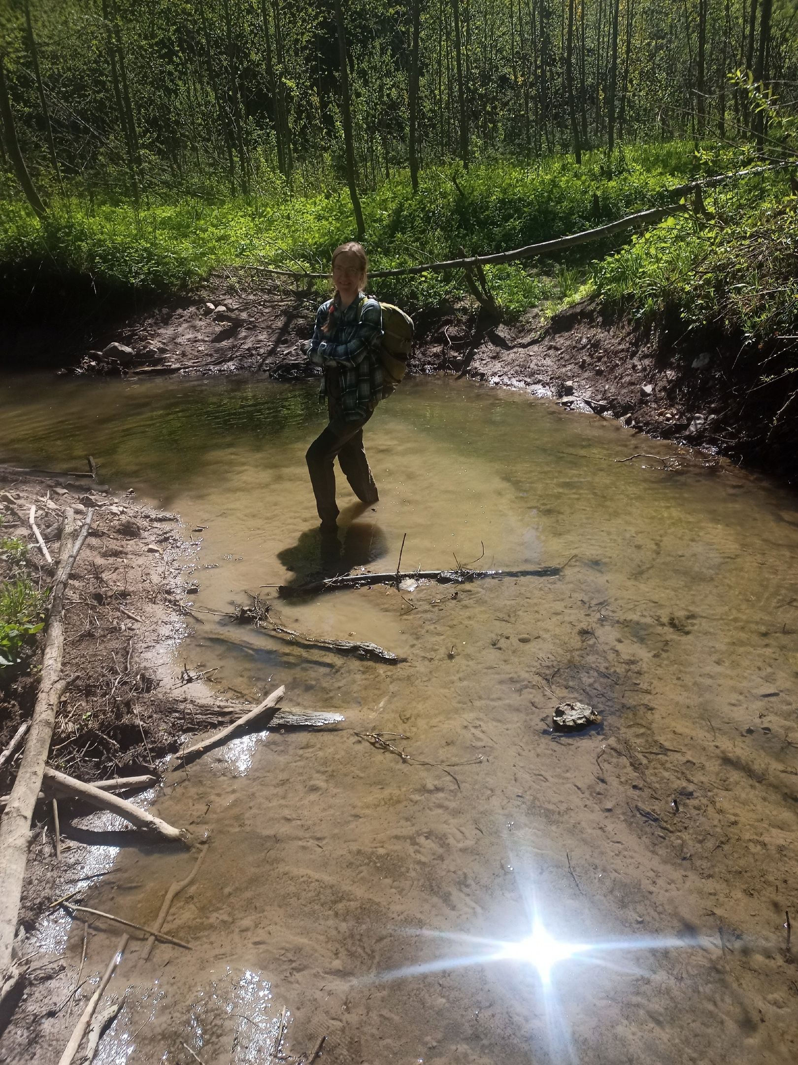 Продолжение маршрута было через болото (пока что чистое, но зато очень холодное), я промокла до колен и слегка подмёрзла. А потом мы нашли другое болото, более тёплое, но ужасающе грязное, тем более грязь успели помесить сотни пар ног до нашего прихода. Тут я перемазалась по колено и готова была хрюкать, как тот кабанчик)