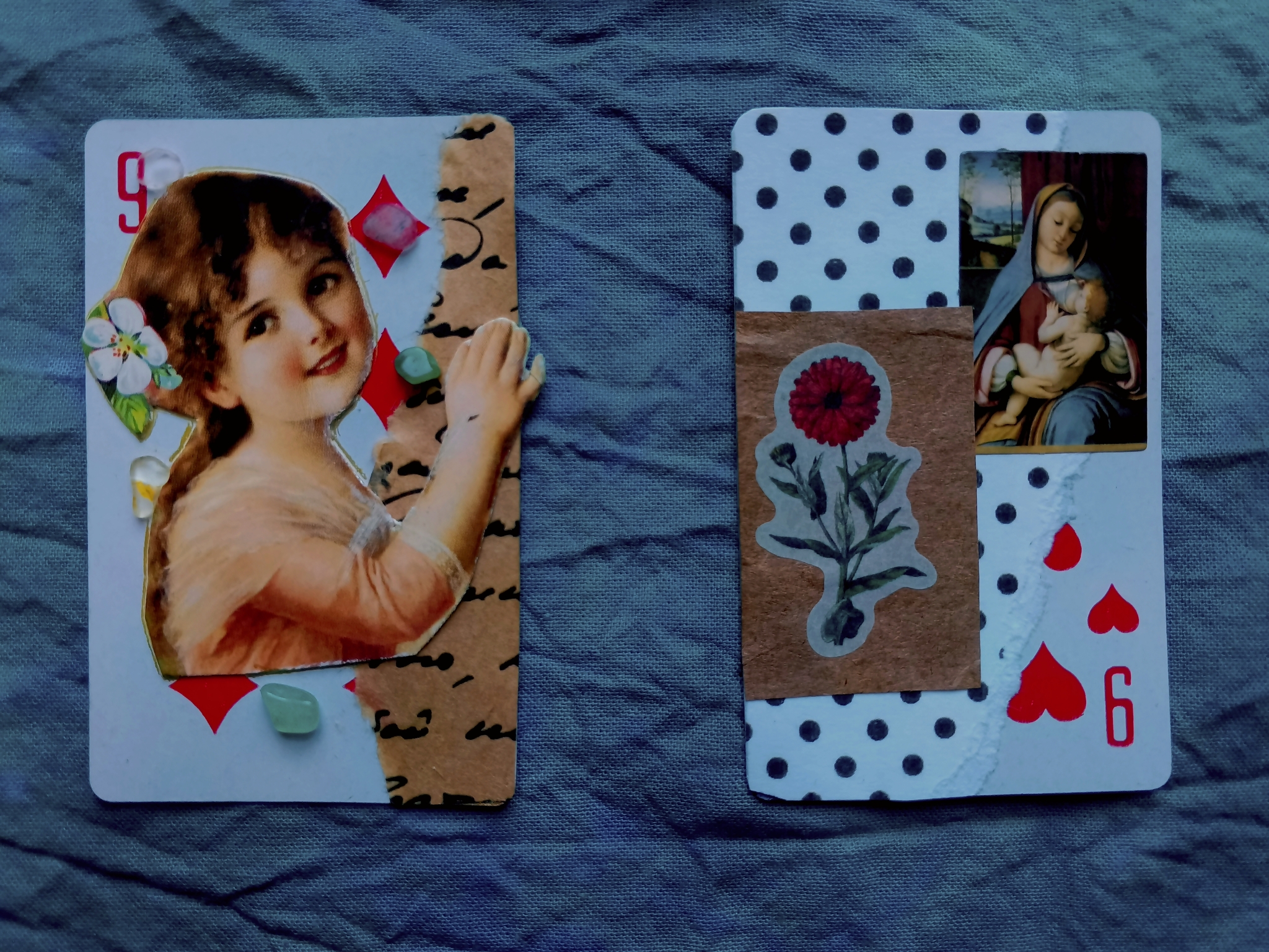 Недавно была в магазине, наткнулась на наши атласные карты, прошерстила Пинтерест в поисках идей, и вот моя собственная (не эротическая!) колода уже создается. Думаю композицию оформить в рамку.