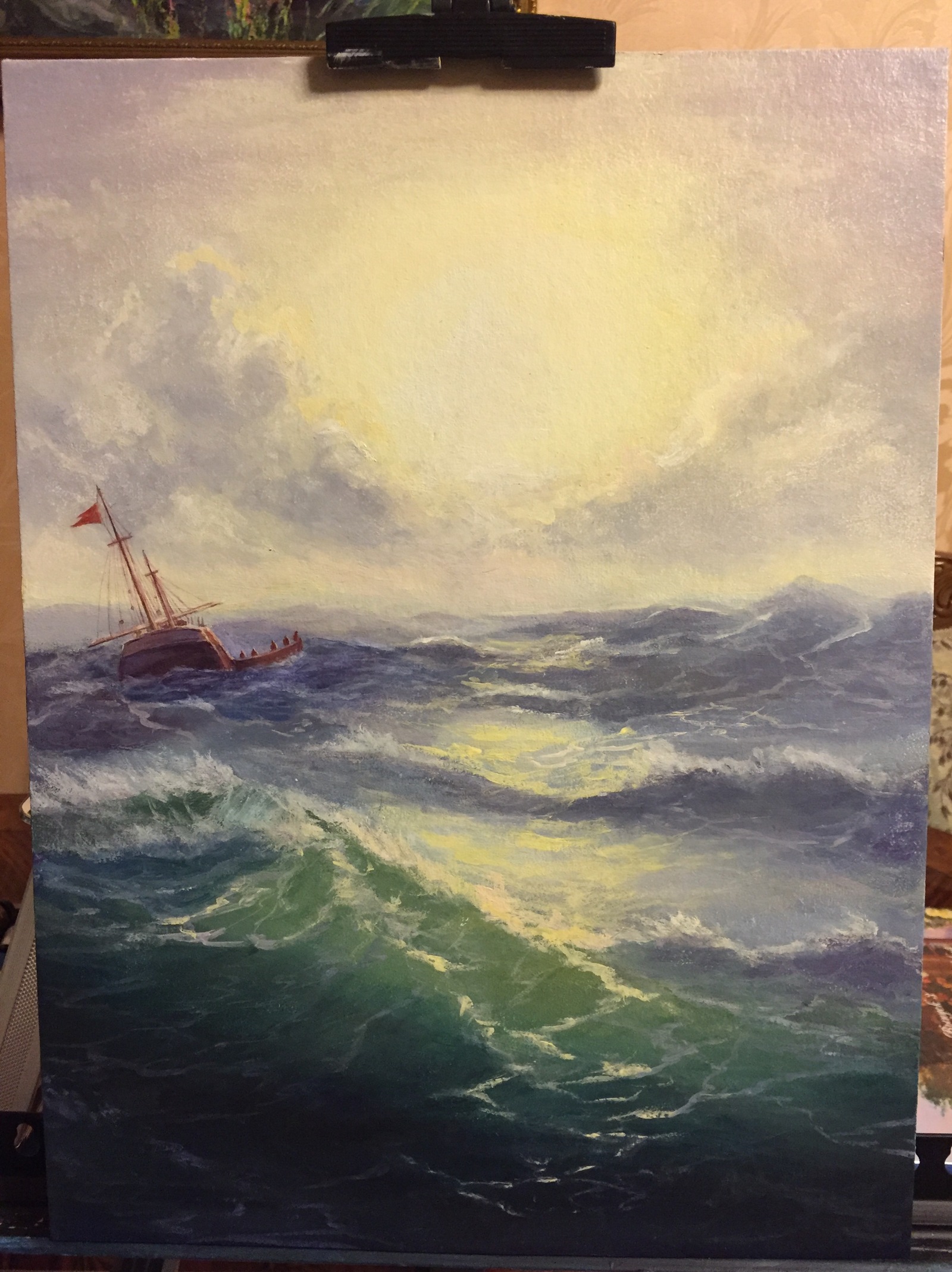 317 Leinete Играют волны - ветер свищет, и мачта гнётся и скрыпит... 9 лет назад [моё] Море Акрил Айвазовский Ночь