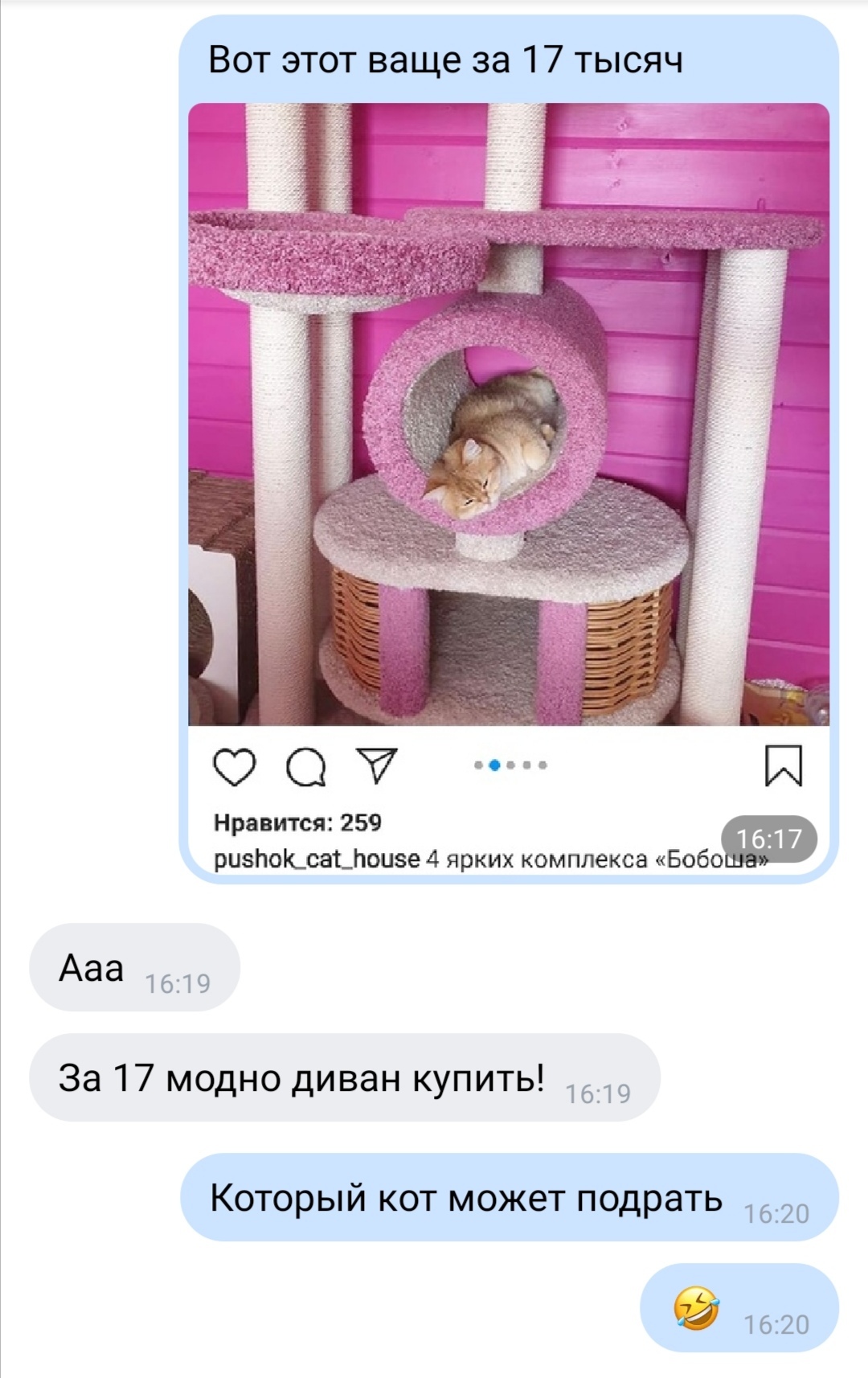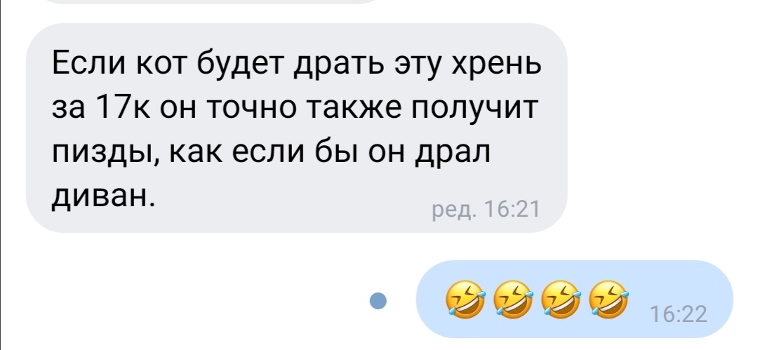 75 DELETED Игровой комплекс для питомца 5 лет назад [моё] Кот Диван Переписка Мат Длиннопост Скриншот Ещё 0