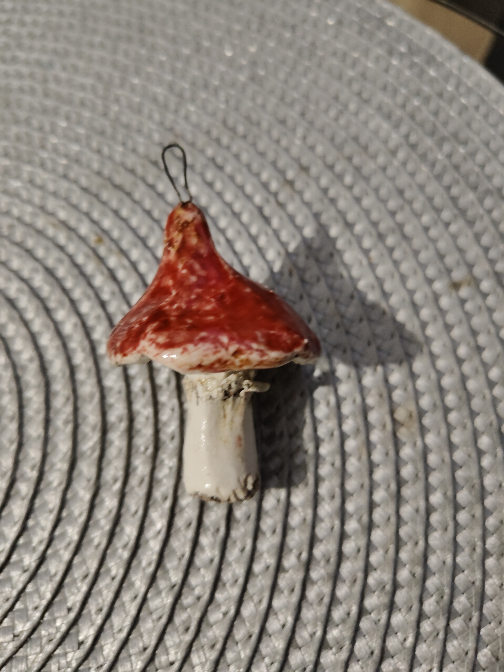 Ещё узнаешь всякую новую местами нужную, местами не особо, фигню... Так, посмотрите какие термины теперь могу вкручивать в беседу (грибники примут за свою)))... Видите как шикарно получилась ламела (перегородочи под шляпкой) и остатки велюма (юбочка на ножке). Эффект комочков земли, естественные неровности. Да, да, да, есть и дефекты. Шляпка то ли неровно покрыта была мной слоями, то ли печь неравномерно "выжгла" глазурь. Появились пробелы. Тогда ещё у меня не было своей печки и причины произошедшего грибок теперь унесёт с собой, докопаться до истины уже никак 🤷