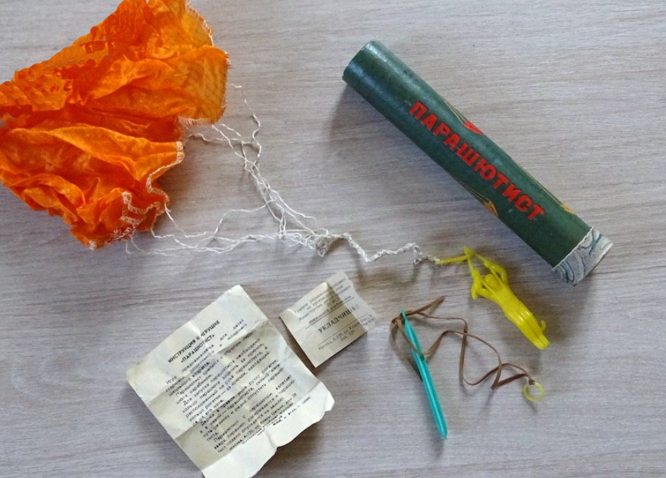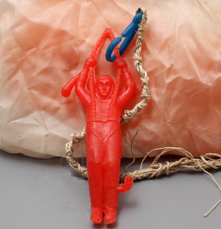 Кстати, в СССР, в 1970-80 годы, были похожие игрушки парашютистов