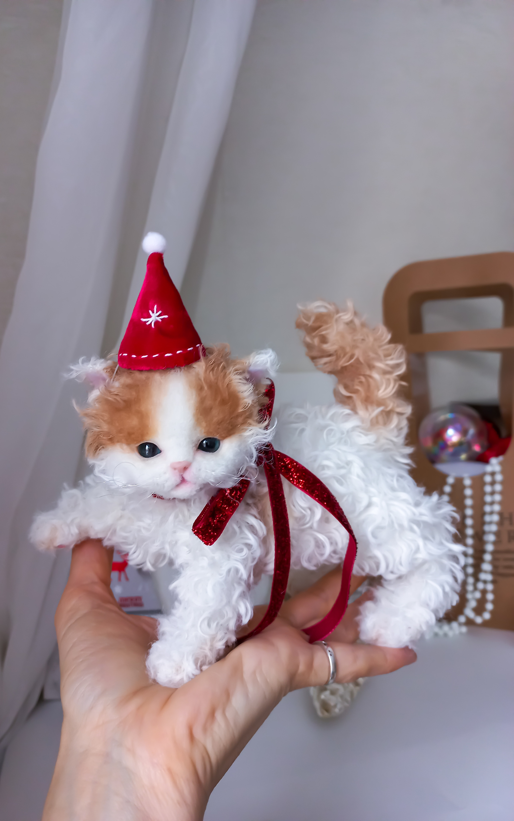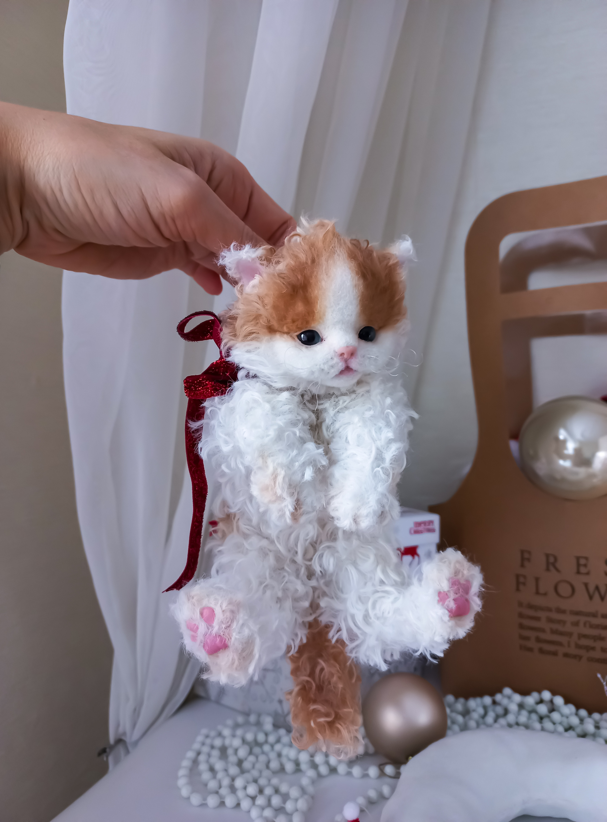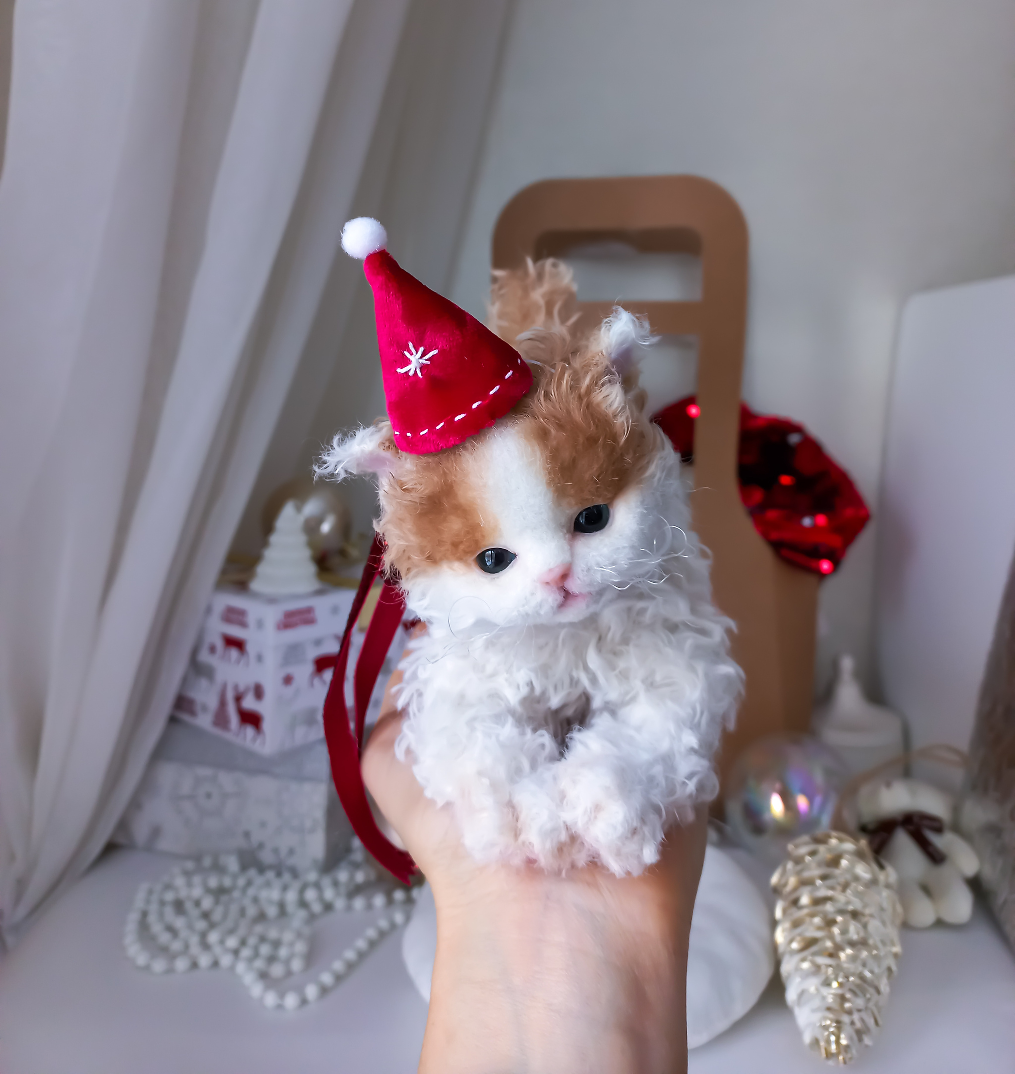 Игрушка котенок. Беленький котеночек Селкирк рекс Coco