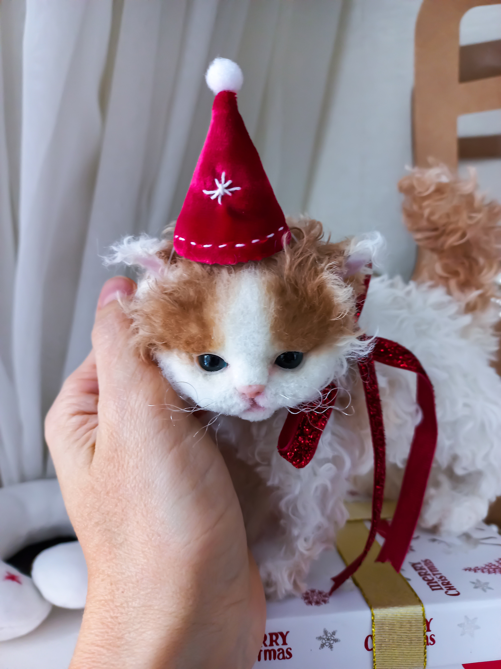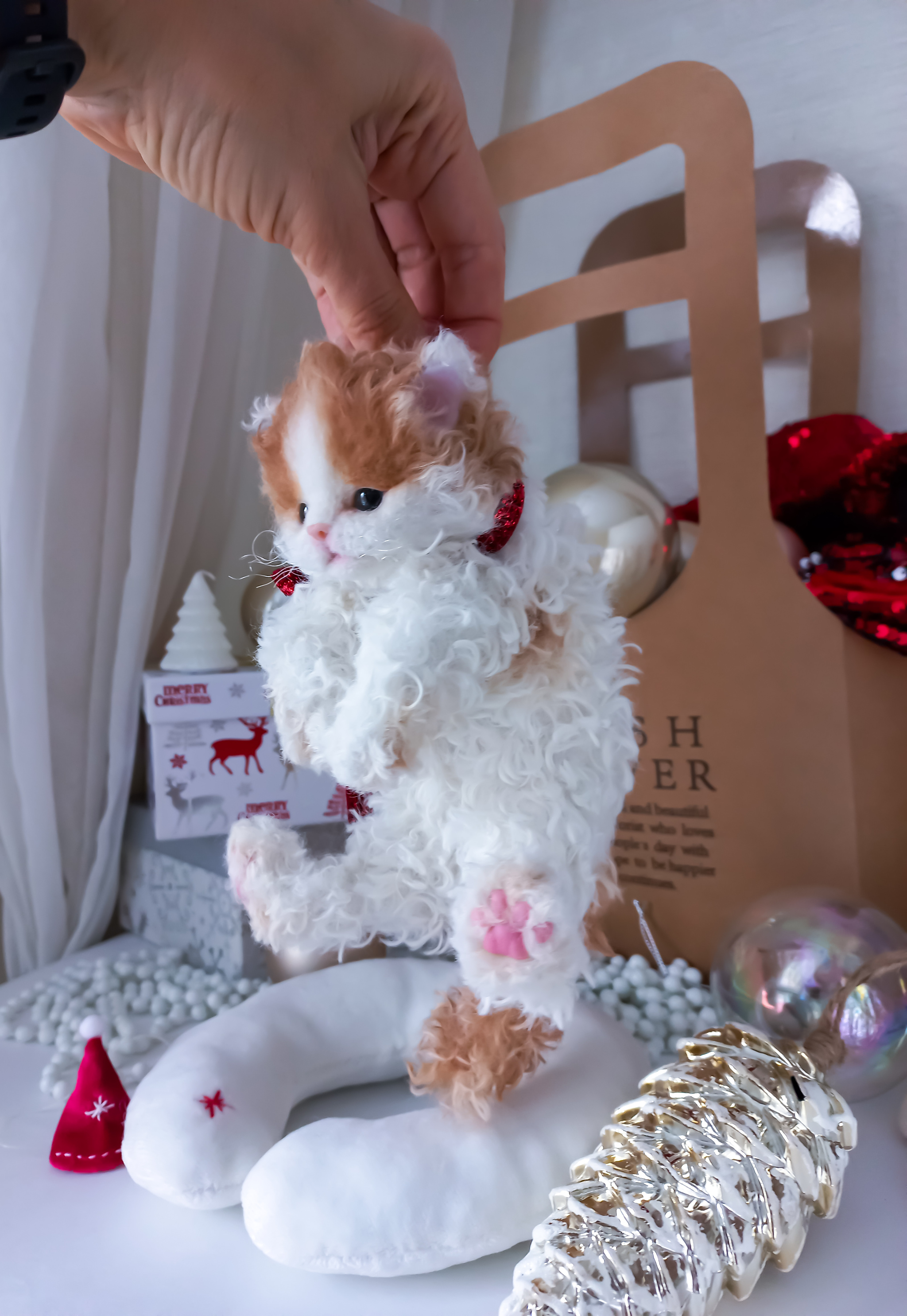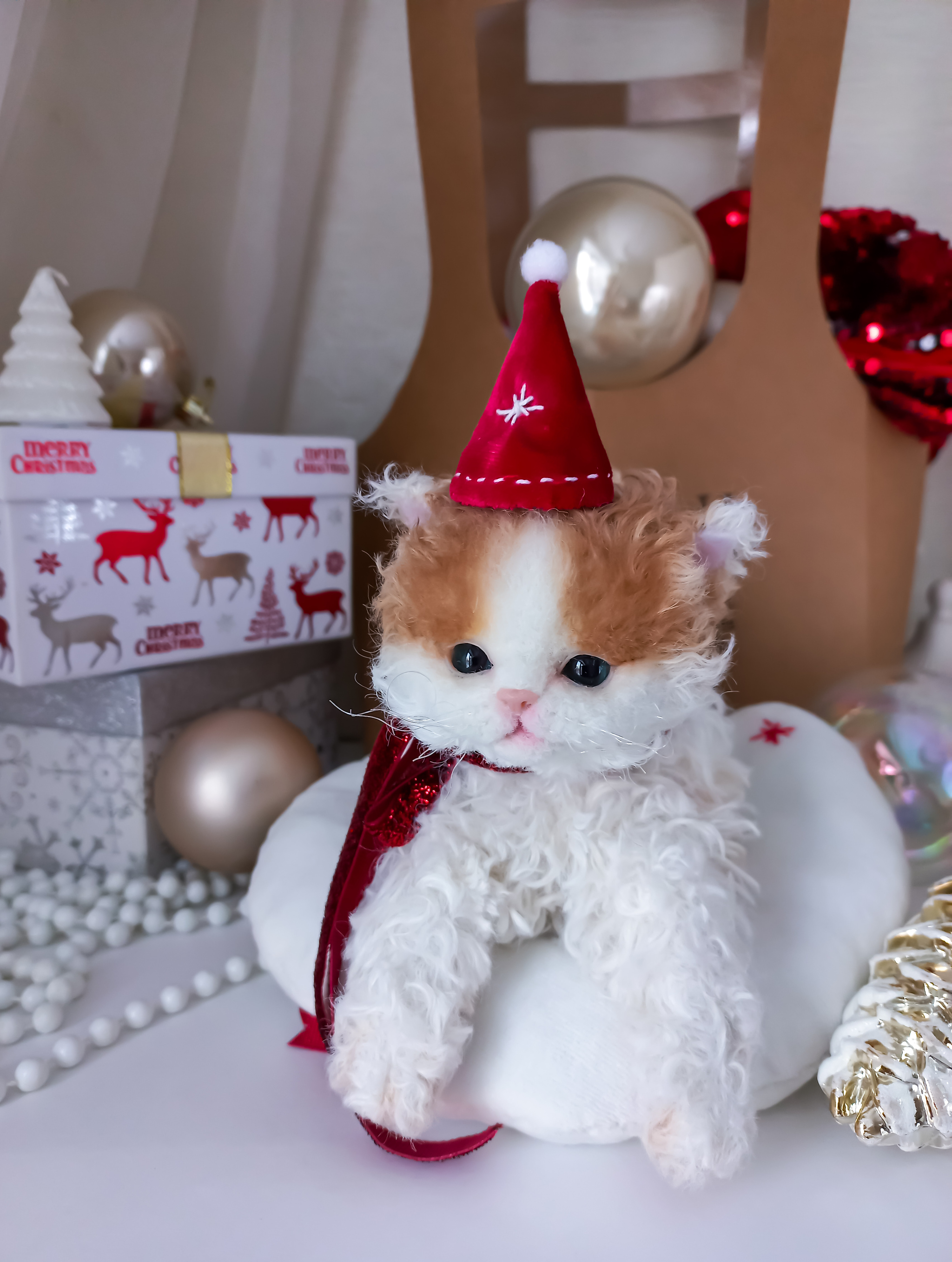 Игрушка котенок. Беленький котеночек Селкирк рекс Coco