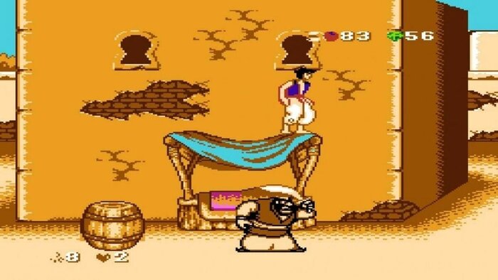 Игра Алладин. Была классной на тот момент графика в игре и то, что можно было играть за любимого персонажа из мультика. Был один сложный уровень, где надо было прыгать по облакам в звездном небе . Мы с друзьями настолько устали его проходить, что я принесла стакан воды, игрок макал туда палец, потому что палец его уже огнем горел. В итоге мы осилили этот уровень и саму игру!