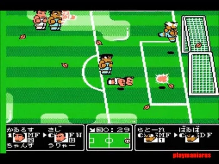 Японский футбол. Мой брат обожал эту игру. Они с другом целыми днями в нее играли. Я была к этой игре равнодушна, но смотреть за их игрой мне нравилось. Футбол был без правил, можно было применять способности, бить другого игрока. Они издавали прикольные звуки. Веселая игрушка!