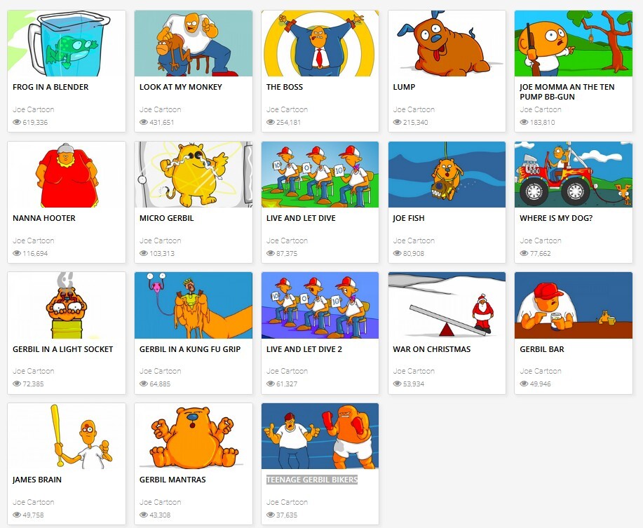Ссылка на официальный сайт с играми Joe Cartoon. На этом же сайте можно посмотреть его мультики