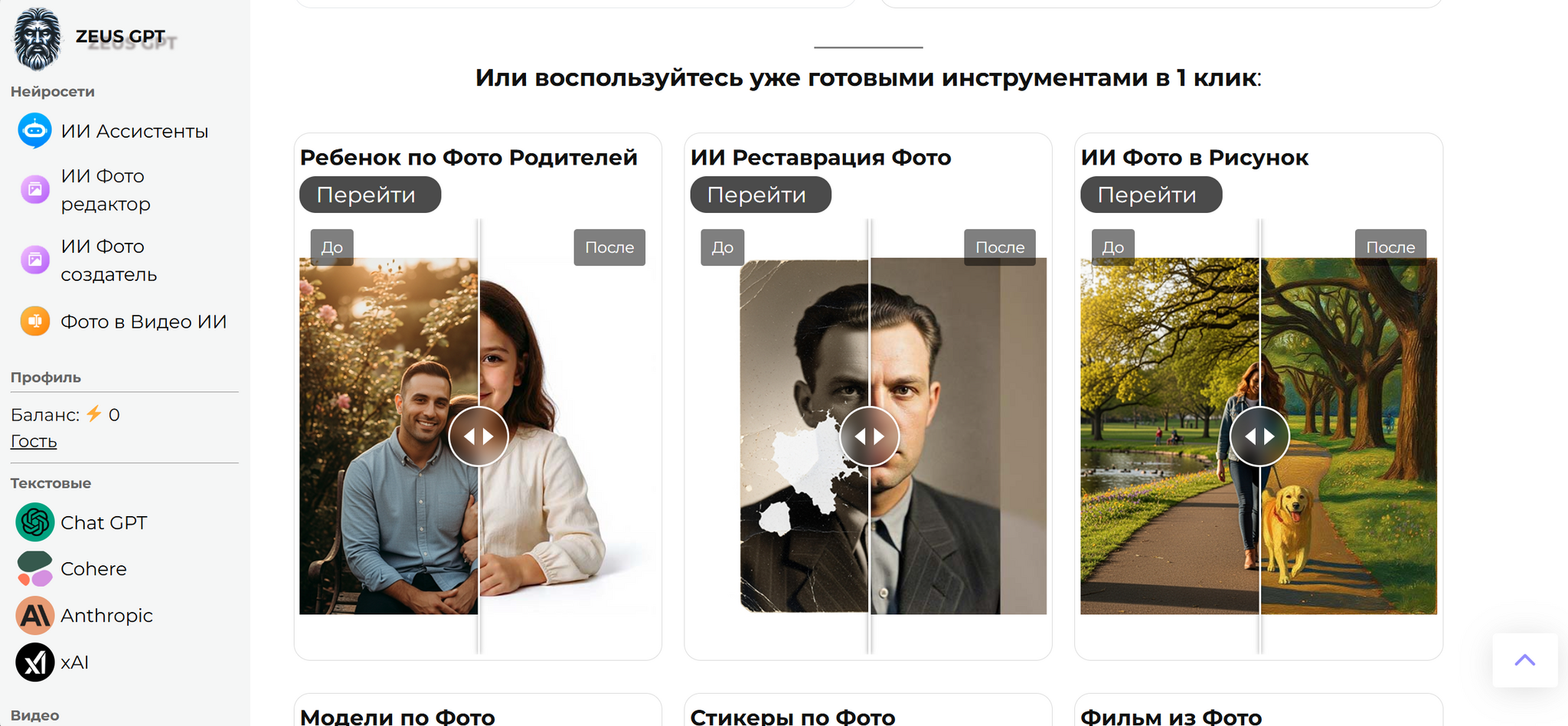 ИИ Редактор/обработка фото нейросетью в одном окне ZeusGPT