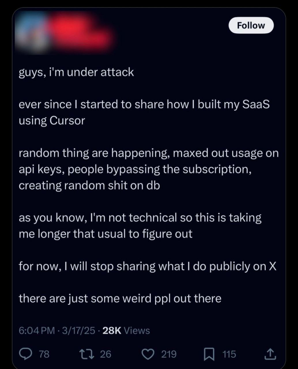 Чувак написал целый сервис (SaaS) и даже начал его продавать по подписке. И всё это без разработчиков — он сам ничего не понимает, всё написал с помощью ИИ Cursor.
