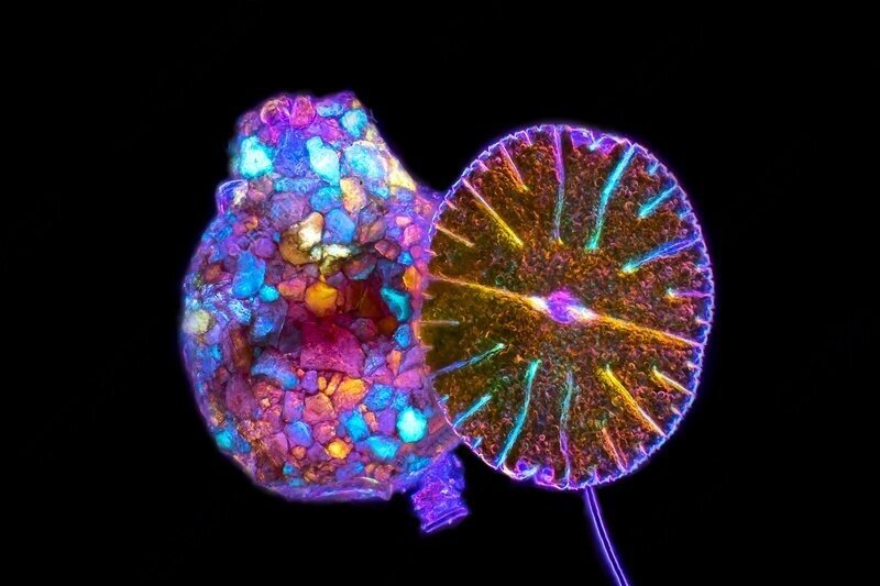 В завершении Вы можете полюбоваться на подборку фотографий некоторых раковин, сделанных с помощью микроскопа со специальными поляризующими световыми фильтрами. При таком освещении они выглядят особенно красивыми.
