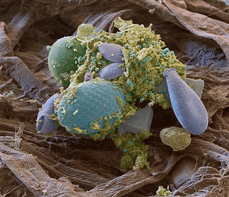 Различные по форме и размеру раковины почвенных амёб. Сканирующий электронный микроскоп