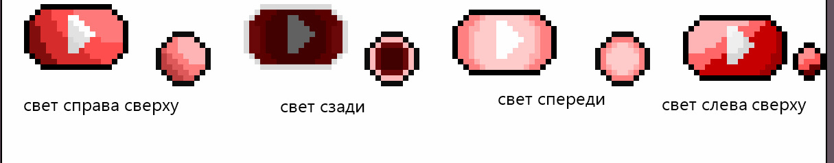 Кстати, мне кажется это симпатичным - особенно пример, когда свет справа сверху и слева сверху. Выглядит интересно с замененными оттенками на другие цвета. Темный красный заменен на темный фиолетовый если я правильно понял и темно синий.