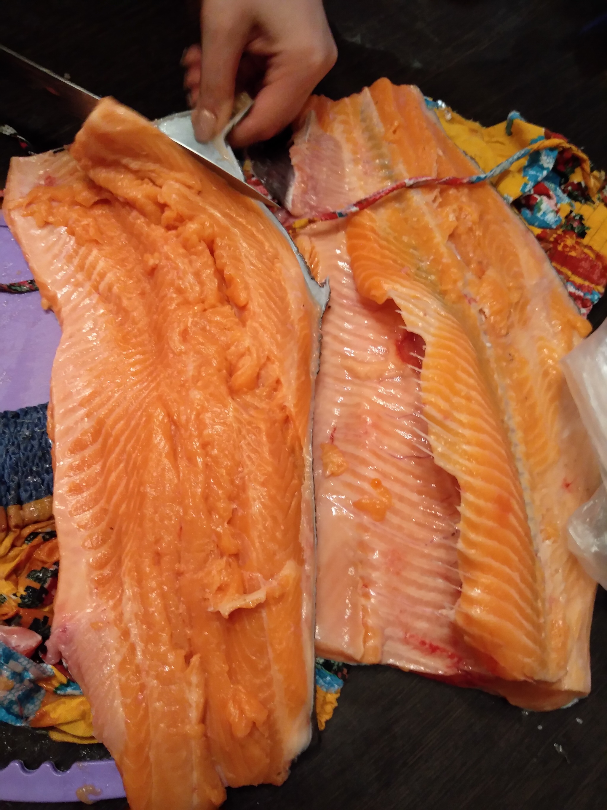 Возле дома открыли новый продуктовый магазин. Пошла на выходных проинспектировать. Смотрю - на скидке мороженая горбуша. Возьму, думаю, средненькую, запеку в духовке. Купила, принесла, положила размораживать. Через пару часов берусь разделывать, отрываю внутри, а там..