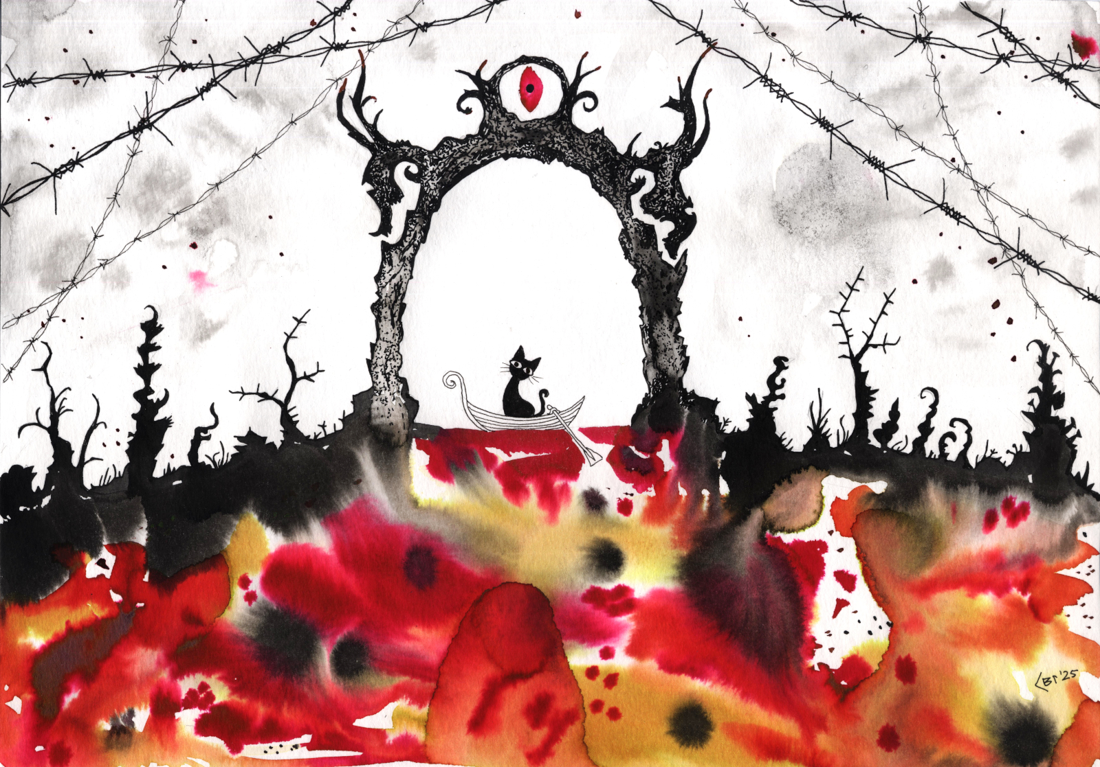 А вот, что делает кот в Аду, - автору неведомо. Может решил навестить нагрешившую хозяйку. Или отомстить живодерам каким. Или он просто кот и бродит, где вздумается...