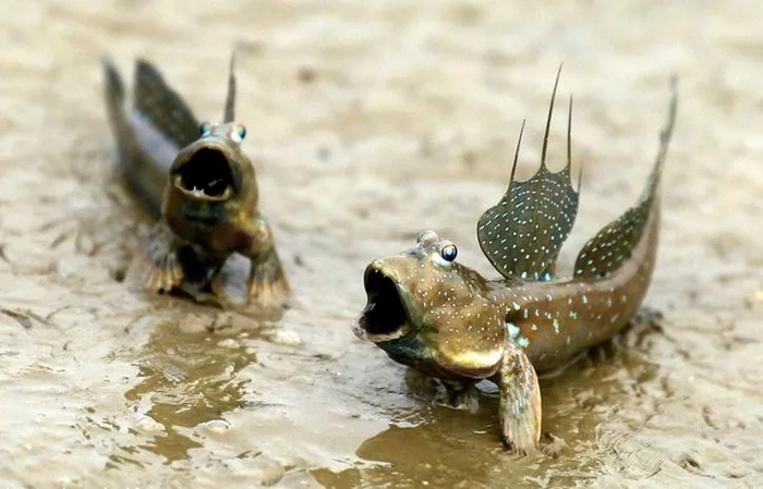 Илистый прыгун: Наглядный пример эволюции. Рыба приспособилась жить на суше и даже залезает на деревья!