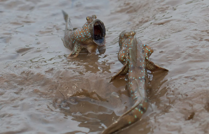 Самцы илистых прыгунов очень территориальны и устраивают разборки в любой непонятной ситуации. Девушки — отличный повод для драк.