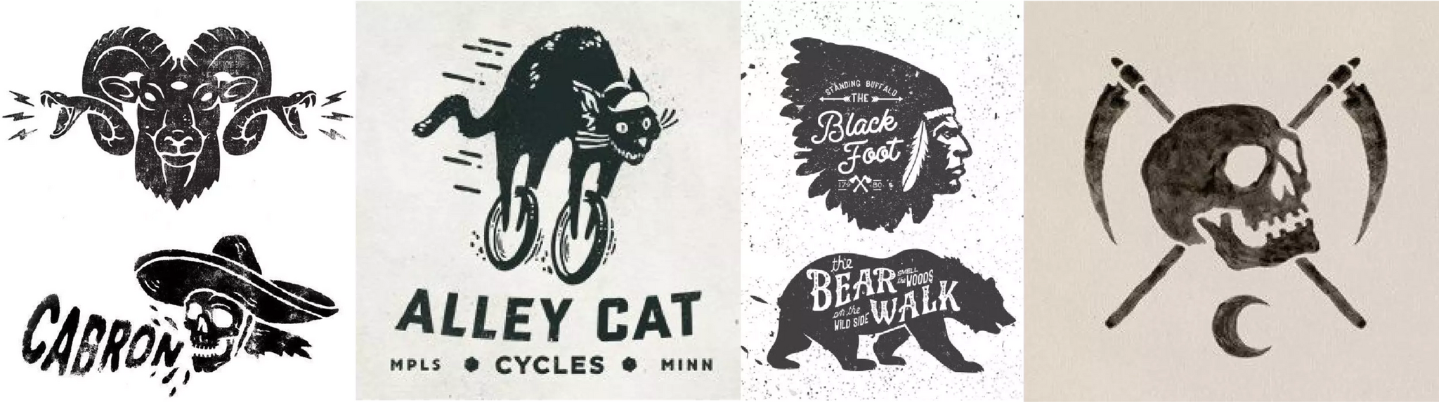 Мне всегда нравился американский ретро-стиль в логотипах и экслибрисах, где текстура определяется отпечатком линогравюры или краски. Неидеальность отпечатка, искажения пропорций — всё это часть андеграунда, который мне нравится использовать в своих работах.