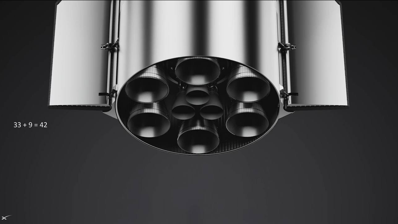 - Всё ещё конфигурация из 33 двигателей Raptor 3;